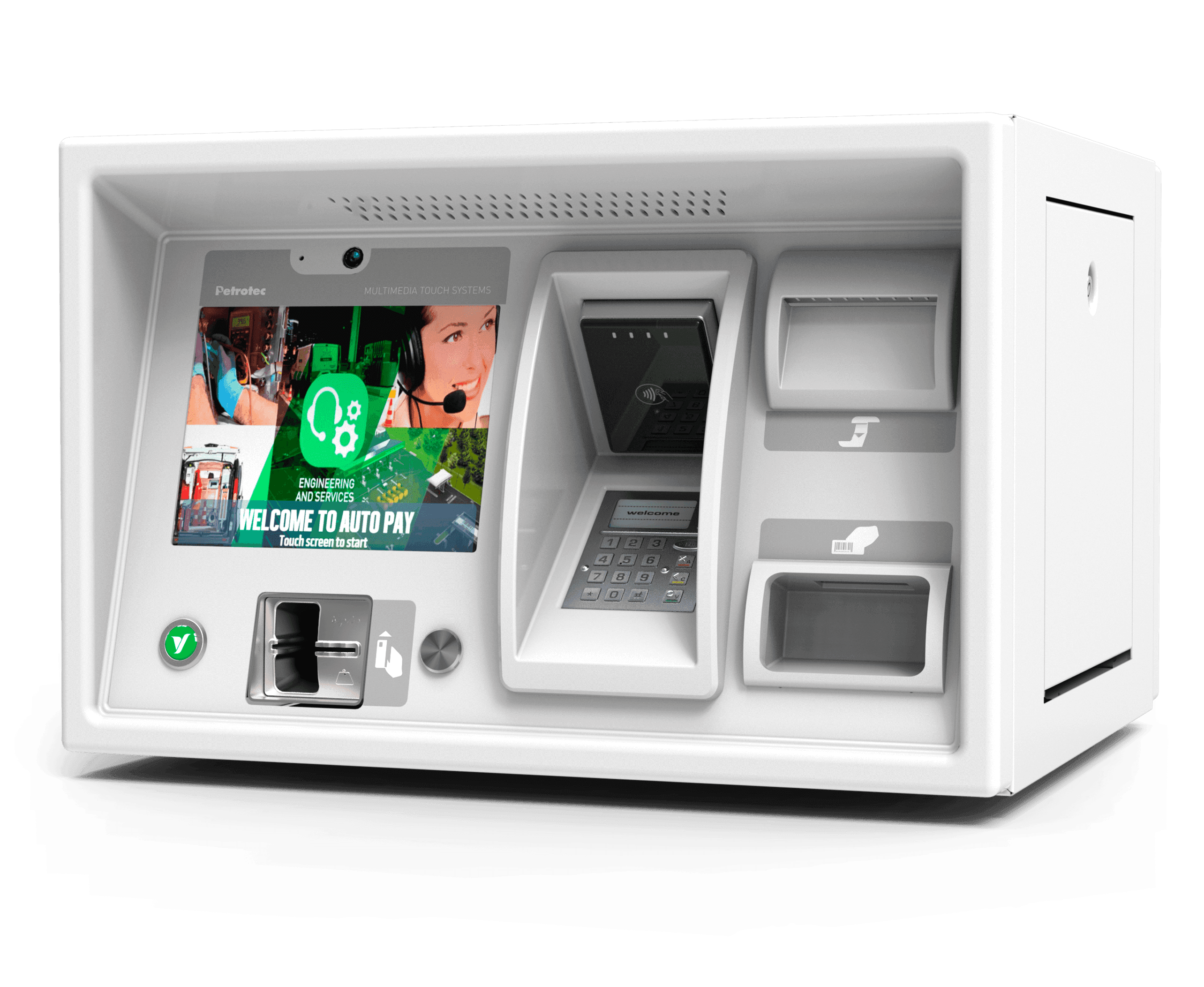 Available in three different configurations (DIT, stand alone or wall mounted) with single or double face, the multimedia terminal increases your revenue while engaging with customers in new and direct ways. Several anti-fraud measures and strong environmental protection ensure that nothing will stop your business.